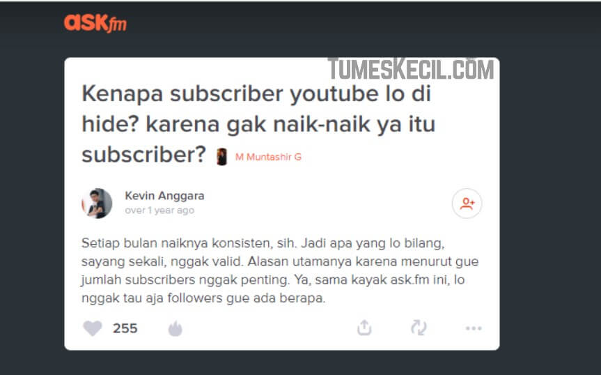 Seperti halnya Kevin Anggara yang menyembunyikan jumlah subscribernya karena menganggap bahwa jumlah subscriber tidak penting yang di katakan di ask fm lebih dari 1 tahun yang lalu. Walaupun kevin menganggap bahwa subscribernya terus meningkat, tapi akhir-akhir ini kevin anggara jarang sekali melakukan update videonya.