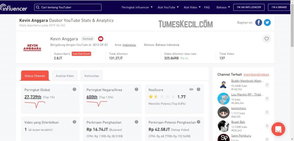 1. Silahkan kunjungi situs https://id.noxinfluencer.com/